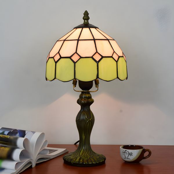 Vintage Art Nouveau Stained Glass Table Lamp with Antique Bronze Base for Warm Ambient Lighting - 110V-120V Green