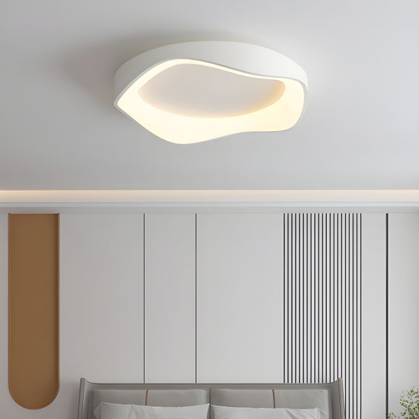Nordic Minimalist LED Ceiling Light, Organic Wavy Ring Flush Mount Fixture - 110V-120V 16.5" White Warm Light