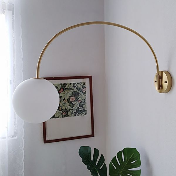 Mid-Century Modern Curved Brass Wall Sconce Interchangeable Shade Light - 110V-120V Globe