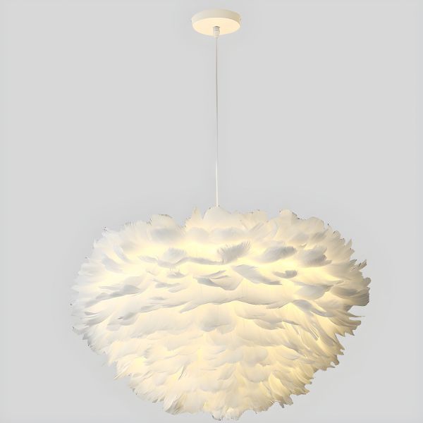 Nordic Real Feather Chandelier, Hand-Woven Plume Pendant Light with Adjustable Cord for Bedroom & Nursery - 110V-120V 12"