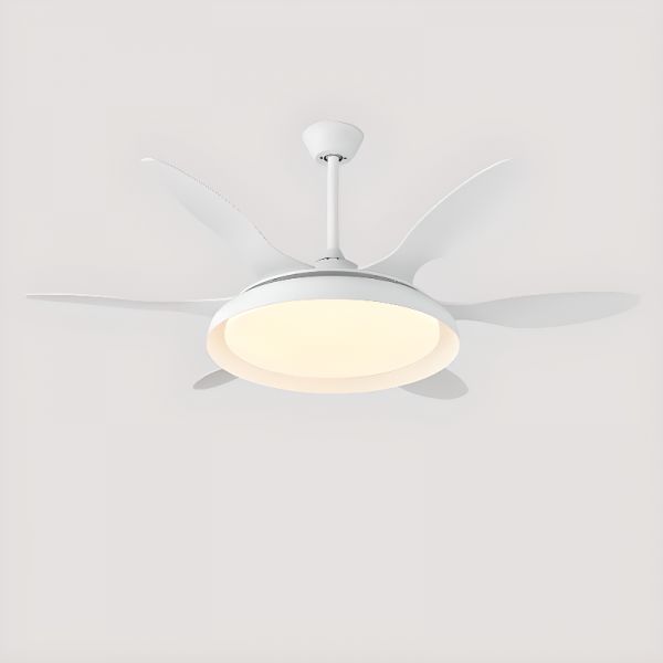 6-Blade Standard Ceiling Fan with Light in Chalk, Flexible Hanging Length, ABS Plastic, Third Gear, Simple LED Style, White, 110V-120V