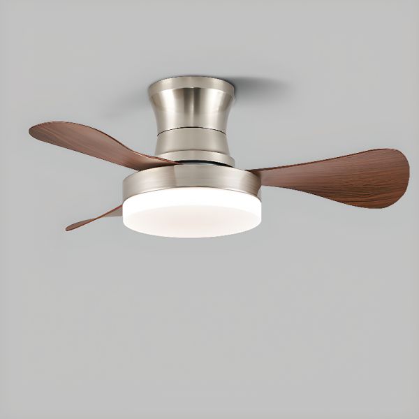 Walnut Color Flush Mounted Ceiling Fan with Light, Featuring 3 Blades, Third Gear Color Temperature, ABS Plastic, Simple LED Style, Nickel, 110V-120V