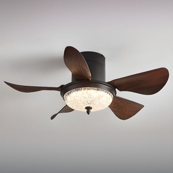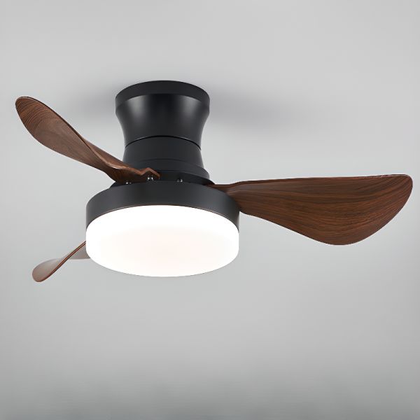 Walnut Color Ceiling Fan with Light, Continuous Dimming Via Remote, Flushmount, 3 Blades, ABS Plastic Material, Simple Style, LED Light Type, 110V-120V