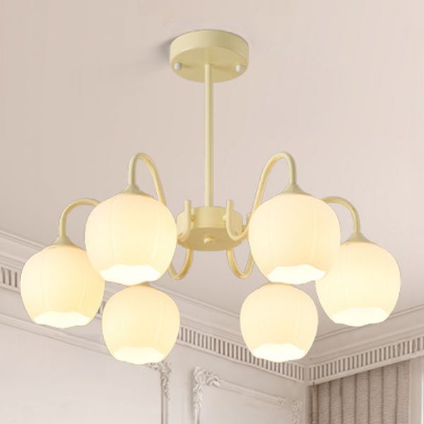 Adjustable Hanging Rod Chandelier Light with White Glass 6 Lights Cover White for Drawing Room Glass, 110V-120V