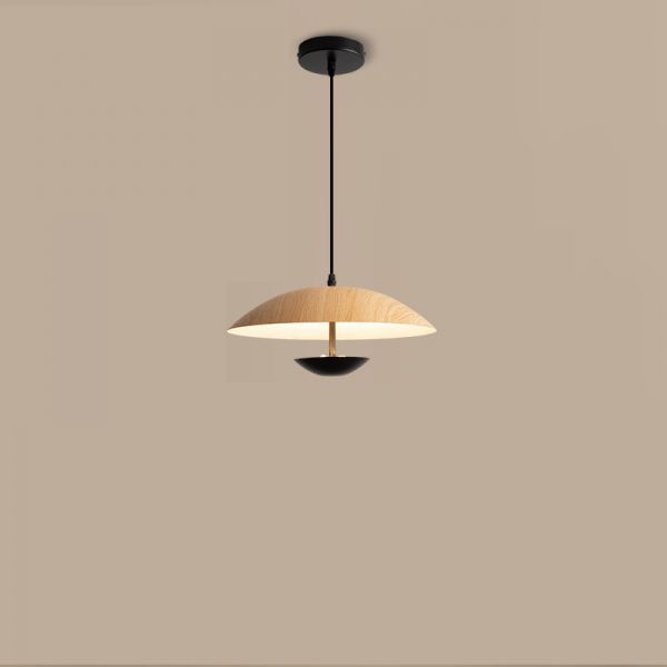 Ceiling Light in Black with Metal Shade, 3 Color LED Rectilinear Fixture, Thread Mounting, Hardwired, 110V-120V, 14", Wood