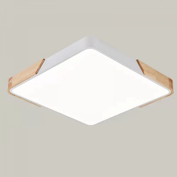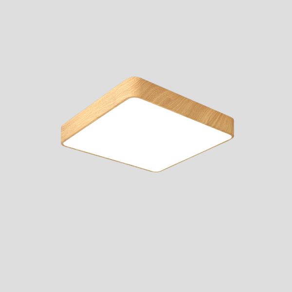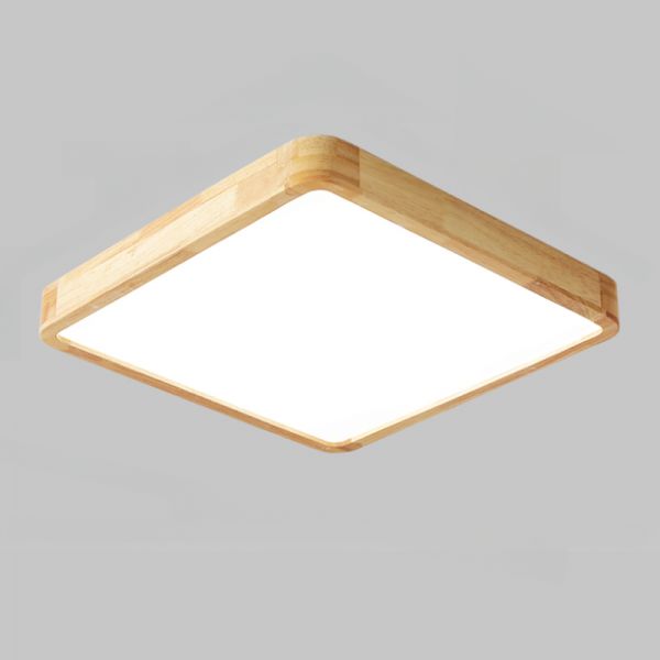 Natural Wood Pure Light Ceiling Lighting with 1 Light Flush Mount Acrylic Shade for Residential Use, 110V-120V, 12", Square