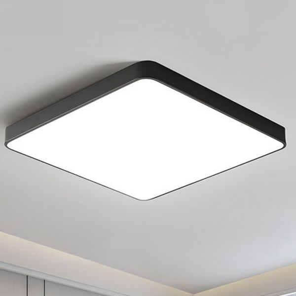 Midnight Black Ceiling Lamp with 1 Light, Hardwired Flat Mounted Metal Fixture, PMMA Shade, LED Light, 110V-120V, 12", Third Gear (Warm/White/Neutral Light of Dimming), Square