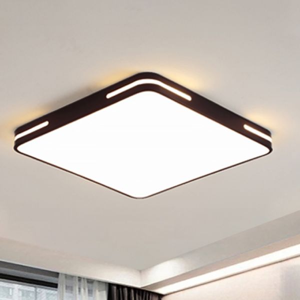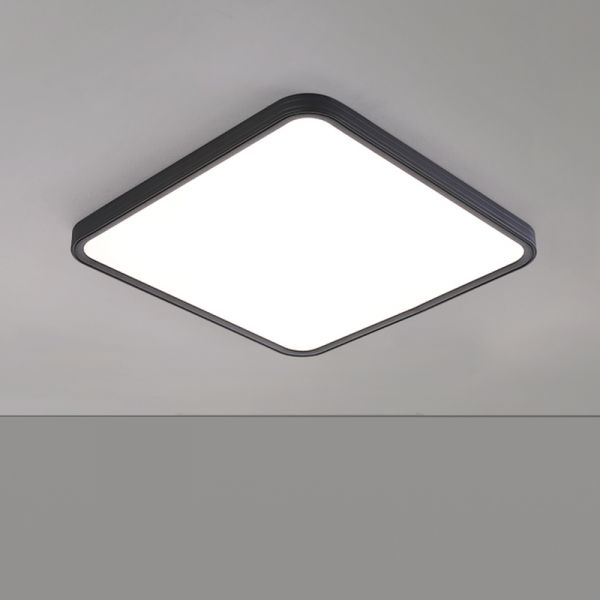 Ceiling Lamp with White Light in Midnight Black, 1 Light, Hardwired Flat Mounted Iron with PMMA Shade, 110V-120V, 12", Square