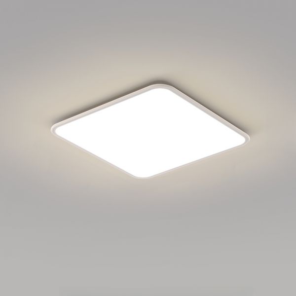 Ceiling Lamp with White Light, White 1 Light, Hardwired Flat Mounted Metal with PMMA Shade, 110V-120V, 16", Square