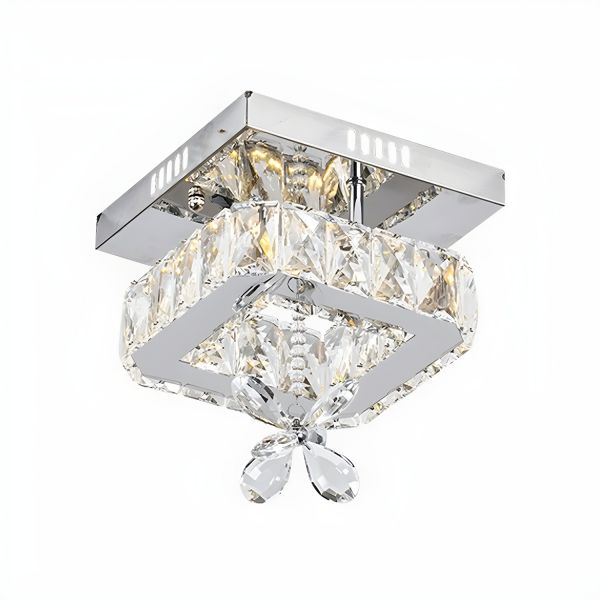 Champagne Crystal Ceiling Light Fixture with White Light, White 1 Light Led, Alloy Material, Lucite Shade, 110V-120V, 24", Square