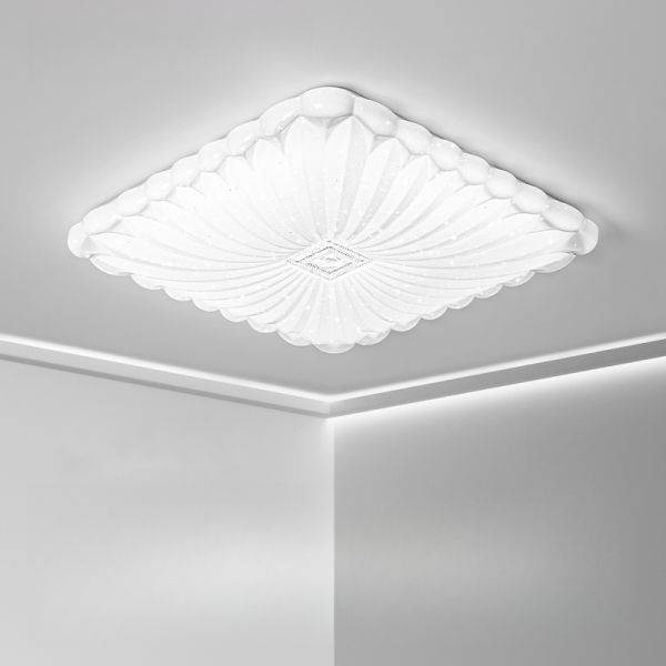 Full-spectrum Light Plumage Ceiling Lighting in Chalk with 1 Light, Flushmount LED Modish Style, 110V-120V, 19", Square