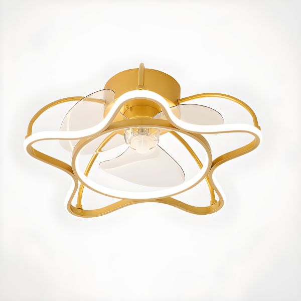 Contemporary Gold Flush Mount Ceiling Fan with Dimmable LED Light and Silent Motor - 110V-120V Star