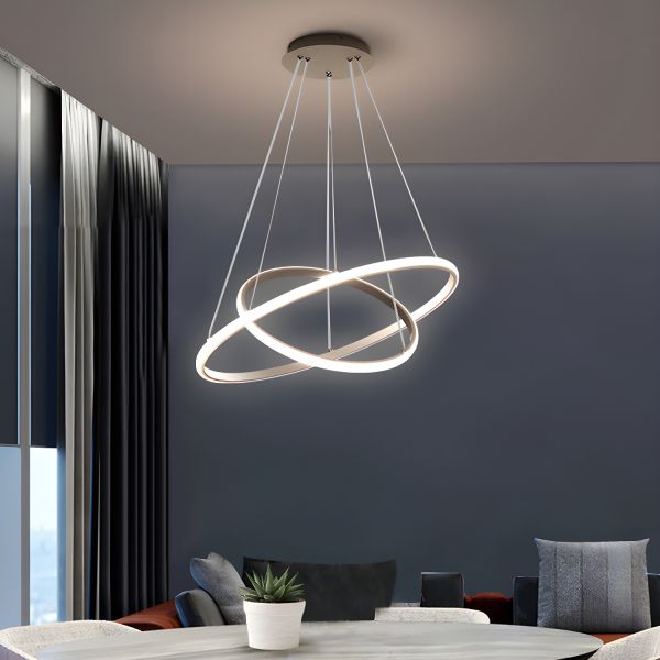 Contemporary Geometric LED Chandelier, Adjustable Layered Ring Pendant Light Fixture - 110V-120V White 2