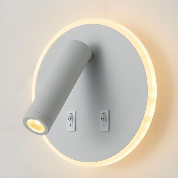 Scandinavian Dual LED Wall Sconce, 2-in-1 Ambient & Reading Light with Independent Switches - Round White Light Left 110V-120V