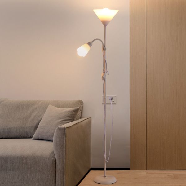 Minimalist Torchiere Floor Lamp with Adjustable Reading Arm and Weighted Base - White 110V-120V Geometry