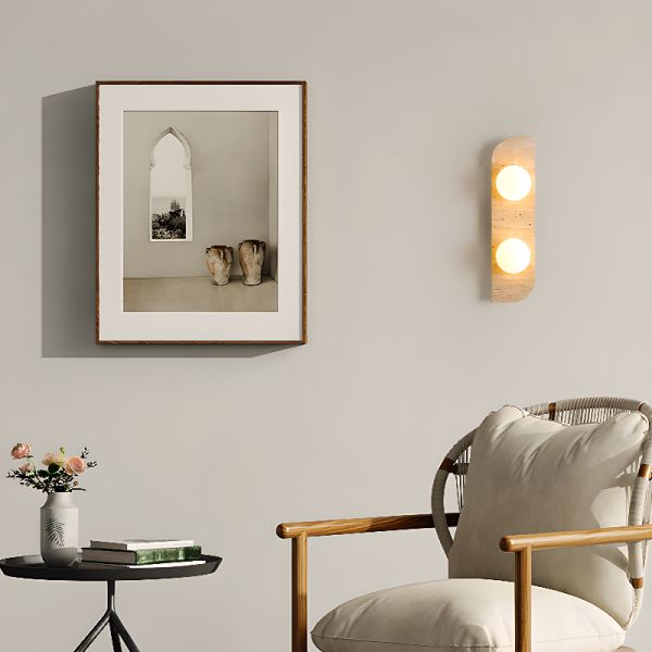 Japandi Travertine Wall Sconce, Natural Stone & Glass Dual-Light Fixture - 110V-120V Globe / Ball