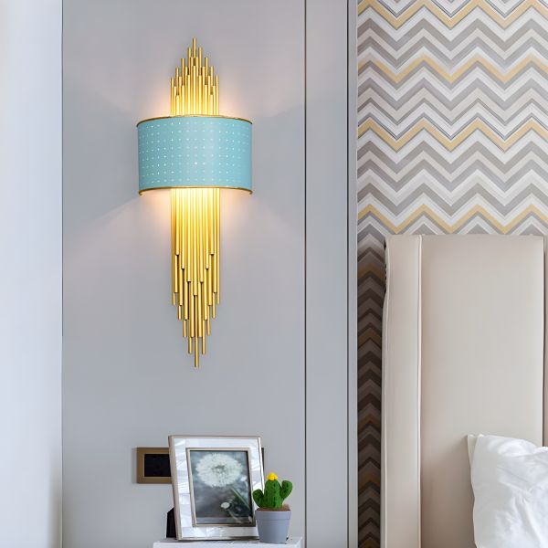 Art Deco Gold Tube Wall Sconce, Perforated Metal Shade Vanity Light, Ambient Accent Fixture - 110V-120V Blue Small