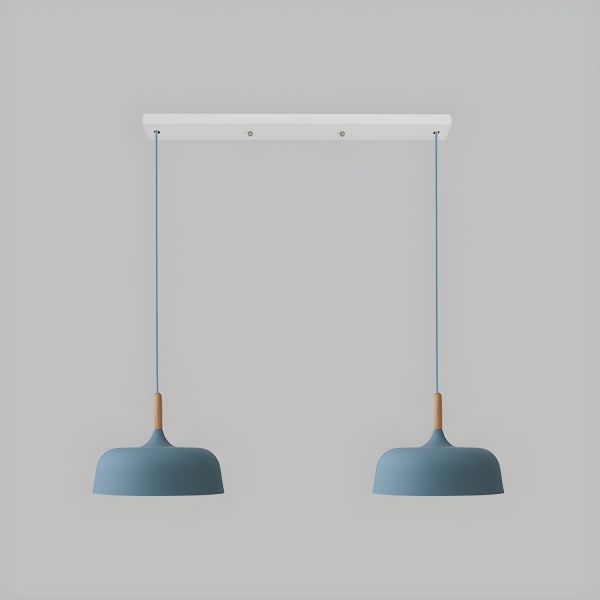 Scandinavian Matte Dome Pendant Light, Aluminum Hanging Fixture with Natural Wood Accent for Kitchen Island or Dining Room - 110V-120V 2 Blue
