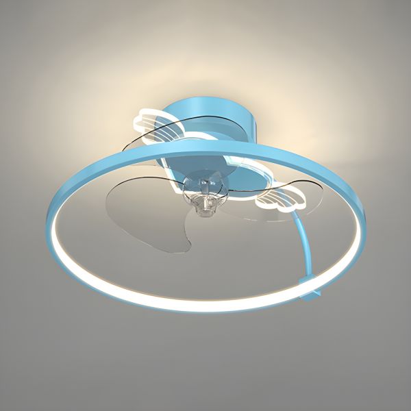 Heart and Butterfly Ceiling Fan Light Kids Style Metal Bedroom LED Semi Flush Light - 110V-120V Blue Remote Control