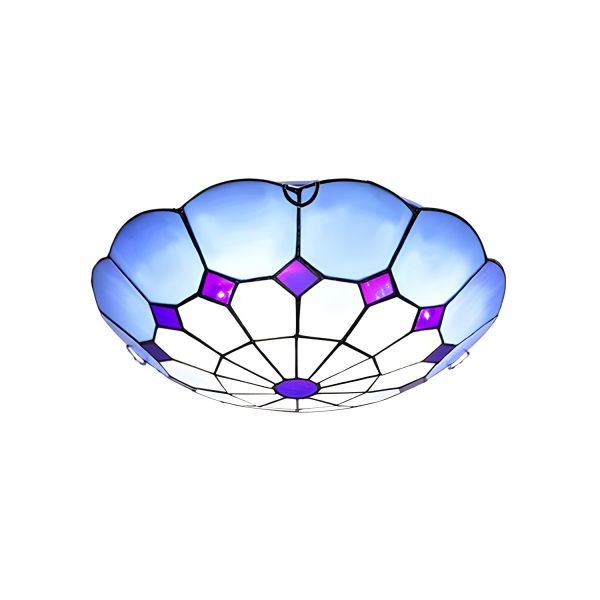 Tiffany-Style Stained Glass Flush Mount Ceiling Light, Handcrafted Geometric Art Shade for Bedroom Entryway - 110V-120V Blue 12"