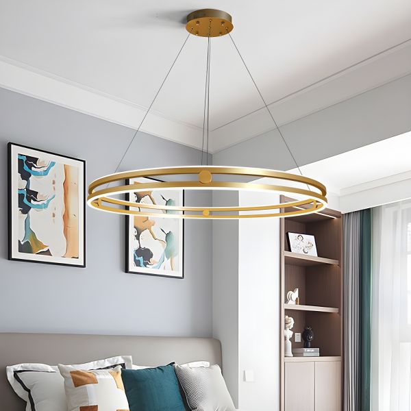 Contemporary LED Ring Chandelier, Adjustable Geometric Pendant Light Fixture with Acrylic Diffuser - 2 Gold 110V-120V 23.5"