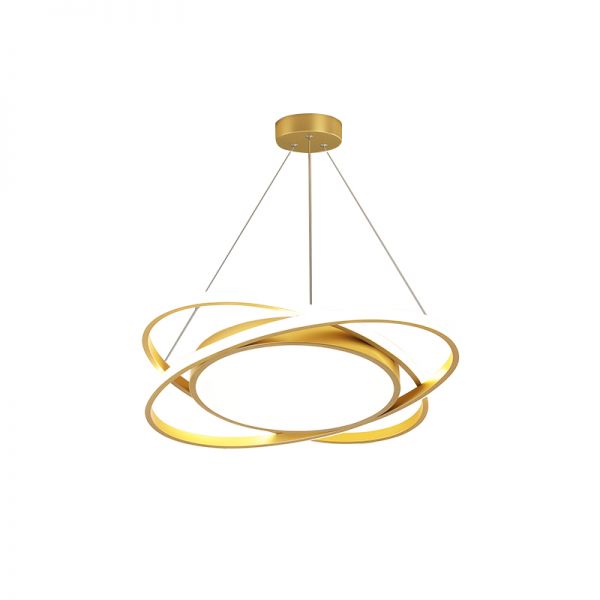 Contemporary Geometric LED Chandelier, Orbital Pendant Light with Adjustable Hanging Height - Gold 110V-120V Third Gear (Warm/White/Neutral Light of Dimming)