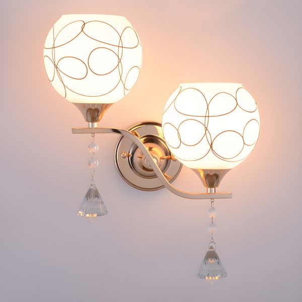 Elegant Crystal Wall Sconce with Patterned Frosted Glass Globe, Contemporary Metal Vanity Light Fixture - 110V-120V Gold 2