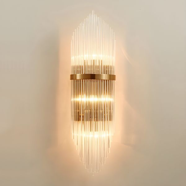 Art Deco Crystal Wall Sconce, Modern Stainless Steel Fixture with K9 Glass Rods - Left 110V-120V Gold