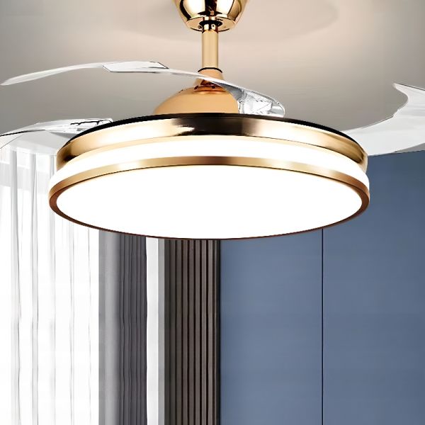 Sleek Retractable Ceiling Fan with Integrated LED Light, Invisible Blades & Silent Motor - Gold 110V-120V 91 cm