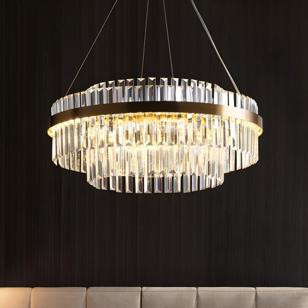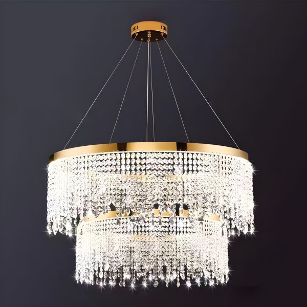 Luxe Tiered Crystal Chandelier, Gold Circular Pendant for Dining Room Ambience - 110V-120V 23.5"