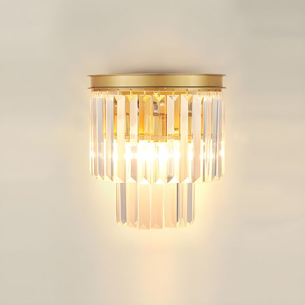 Luxury Crystal Wall Sconce, Art Deco Cylinder Vanity Light Fixture, Stainless Steel & Prism Glass Lamp for Hallway Bedroom Living Room - Gold 110V-120V