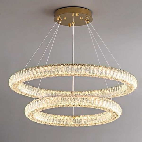 Transparent Shade Chandelier with Remote Control Stepless Dimming and Adjustable Height - 2 Tiers 110V-120V 31.5"