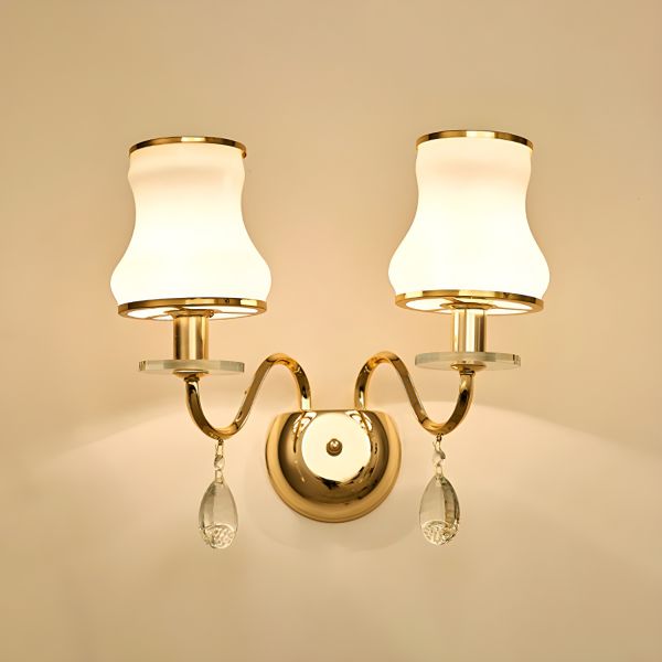 French Vintage Gold Crystal Wall Sconce, Ornate Vanity Light with Glass Shade for Hallway - 110V-120V Gold 2 A
