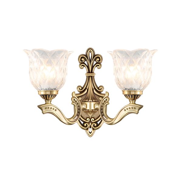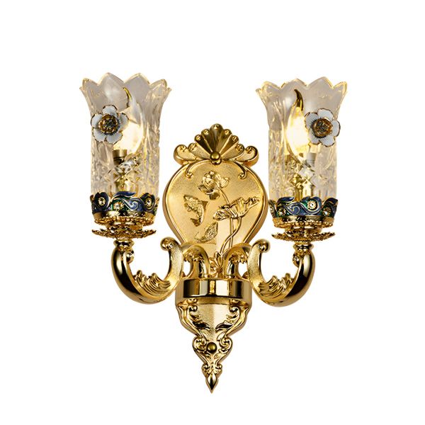 French Baroque Gold Wall Sconce, Vintage Floral Glass Shade with Crystal Accents, Ornate Fixture for Hallway or Bedroom - 110V-120V Gold 2 A