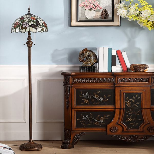 Vintage Art Nouveau Stained Glass Floor Lamp with Dual Pull Chains - 110V-120V