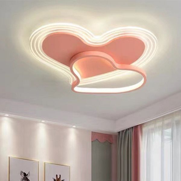 Whimsical LED Flush Mount Ceiling Light, Creative Dimmable Fixture for Bedroom & Nursery - Pink 110V-120V Third Gear (Warm/White/Neutral Light of Dimming) Loving Heart