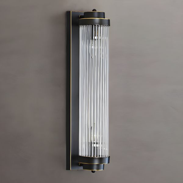 Art Deco Crystal Wall Sconce, Gold Vanity Light with Fluted Glass Rods, Ambient Hallway Fixture - 110V-120V 7"