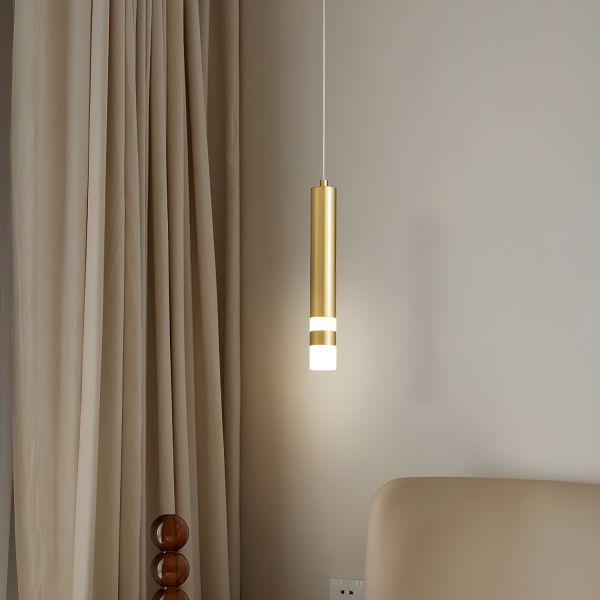 Minimalist Solid Copper Pendant Light, Cylindrical Hanging Fixture with Acrylic Diffuser for Kitchen Island - 110V-120V Brass Design 1