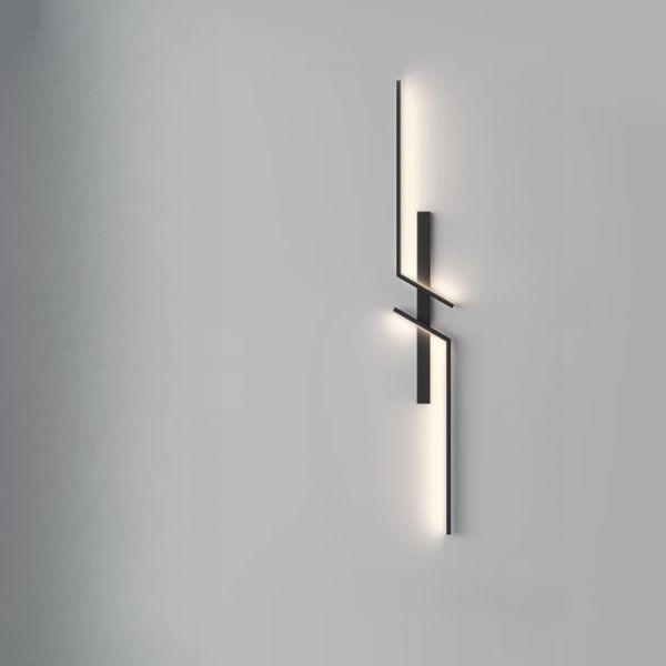Contemporary Geometric LED Wall Sconce, Linear Metal Art Light Fixture - 110V-120V Black 24" White Light