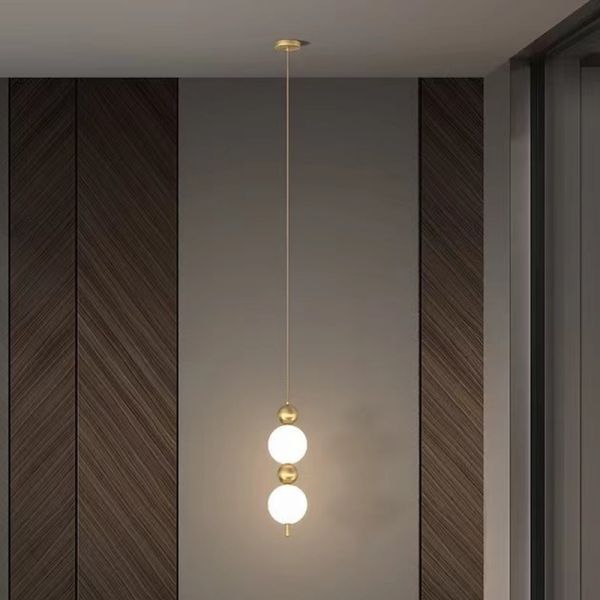 Modern Linear Globe Pendant Light, Vertical Gold LED Hanging Fixture with Opal Glass Shades - 2 110V-120V White Light