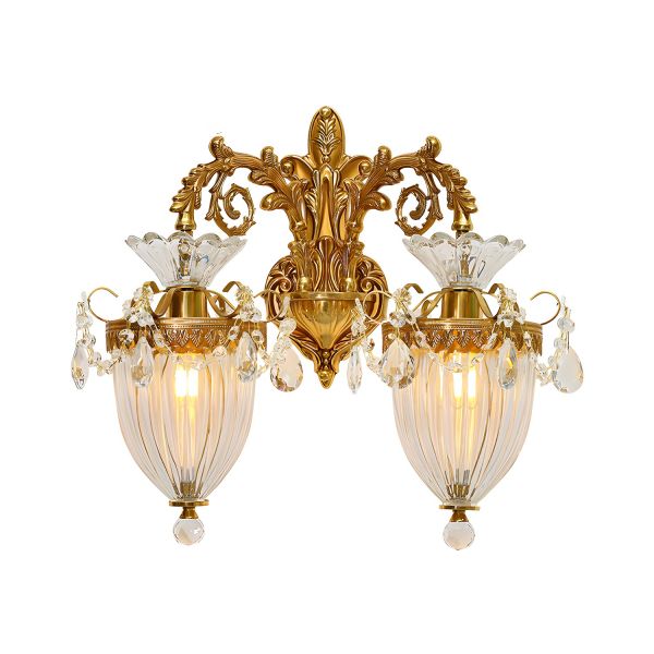 French Baroque Antique Gold Wall Sconce with K9 Crystal Drops and Fluted Glass Shade - 110V-120V 2