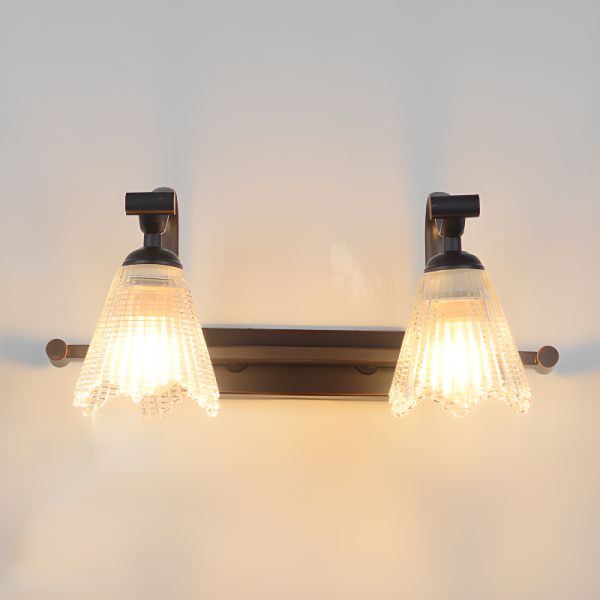 Mid-Century Wall Sconce Lighting Fixture with Fluted Glass Shade for Bathroom Vanity and Corridor - 110V-120V Black 2