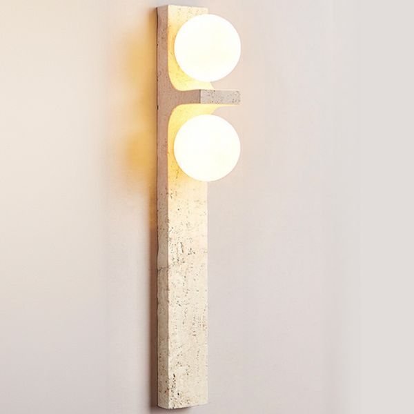 Sintered Stone Wall Light with 2 Lights, White Vitreous Shade, Bi-pin, Cylinder Fixture, Enclosure Included, 110V-120V, Globe / Ball