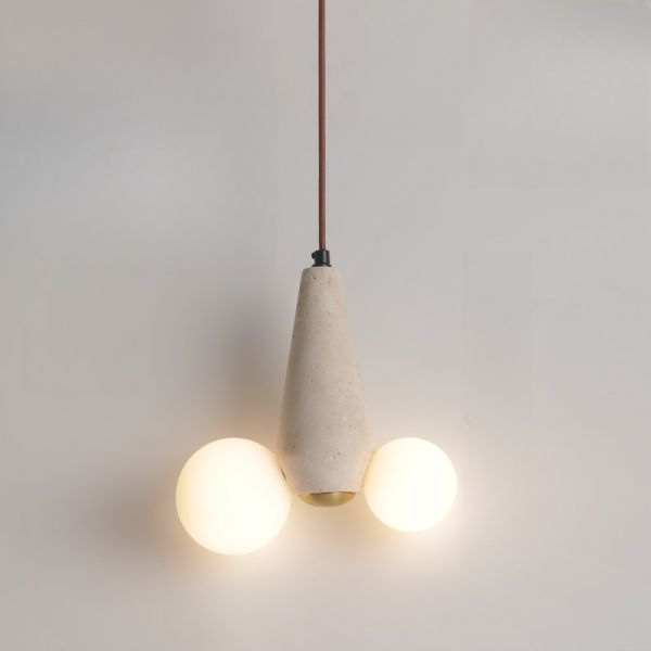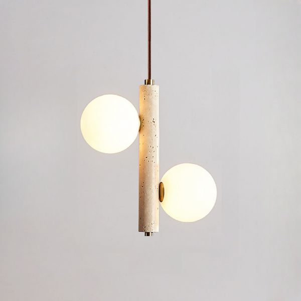 Modern 2 Lights Bi-pin Sintered Stone Ball Pendant Lamp with Chalk Shade and Cord Mounting, 110V-120V, 9.5"