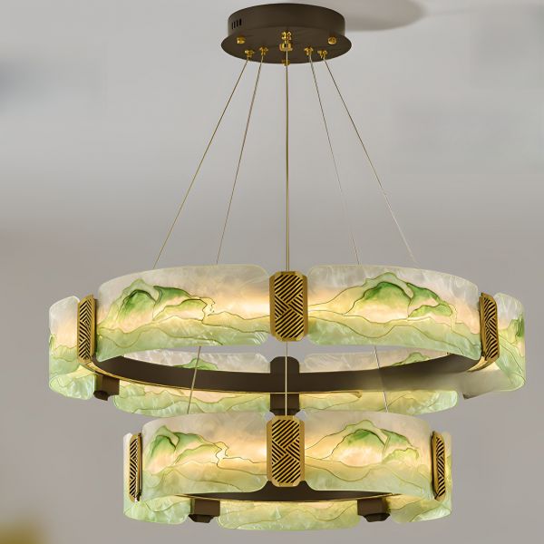Light Green 2 Lights 2 Tiers Adjustable Height Light Chandelier, 110V-120V, 19.7"+27.6"(50+70cm)
