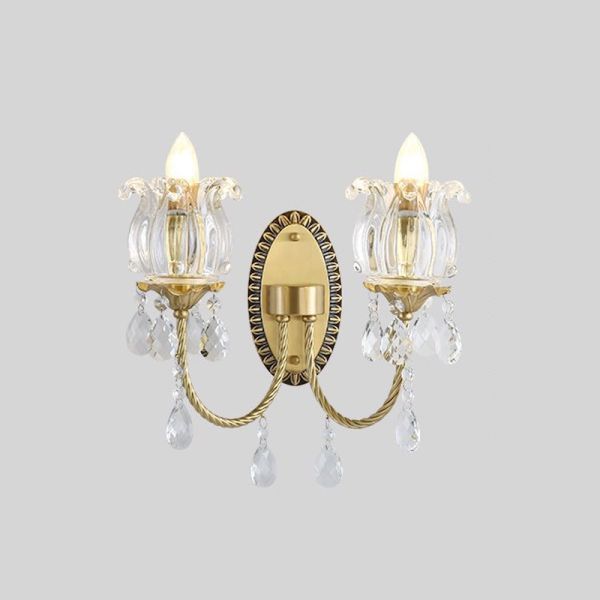 Metallic Wall Light with Crystal Shade, Upward Clear Crystal Wall Lamp, Transparent 2 Lights, 110V-120V, Bud