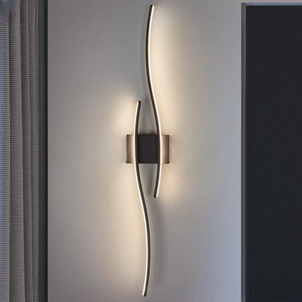 Contemporary Minimalist LED Wall Sconce, Artistic Curved Linear Light Fixture for Living Room Hallway - Black 110V-120V 24.5" Natural Light