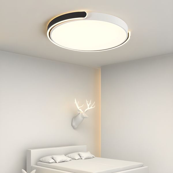 Minimalist LED Flush Mount Light, Geometric Halo Ceiling Fixture with Anti-Glare Acrylic Shade - Black 110V-120V 16" Natural Light