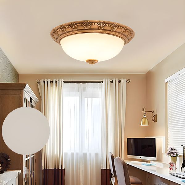 Glass Shade Ceiling Mount Light American Country Style Bowl Shape Living Room Flush Mount Light - 110V-120V Brass 12" with Lace