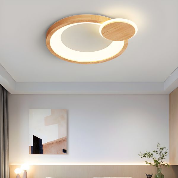 Scandinavian Solid Wood LED Flush Mount Ceiling Light, Geometric Round Fixture with Acrylic Shade - 110V-120V 2 Remote Control Stepless Dimming Small Size